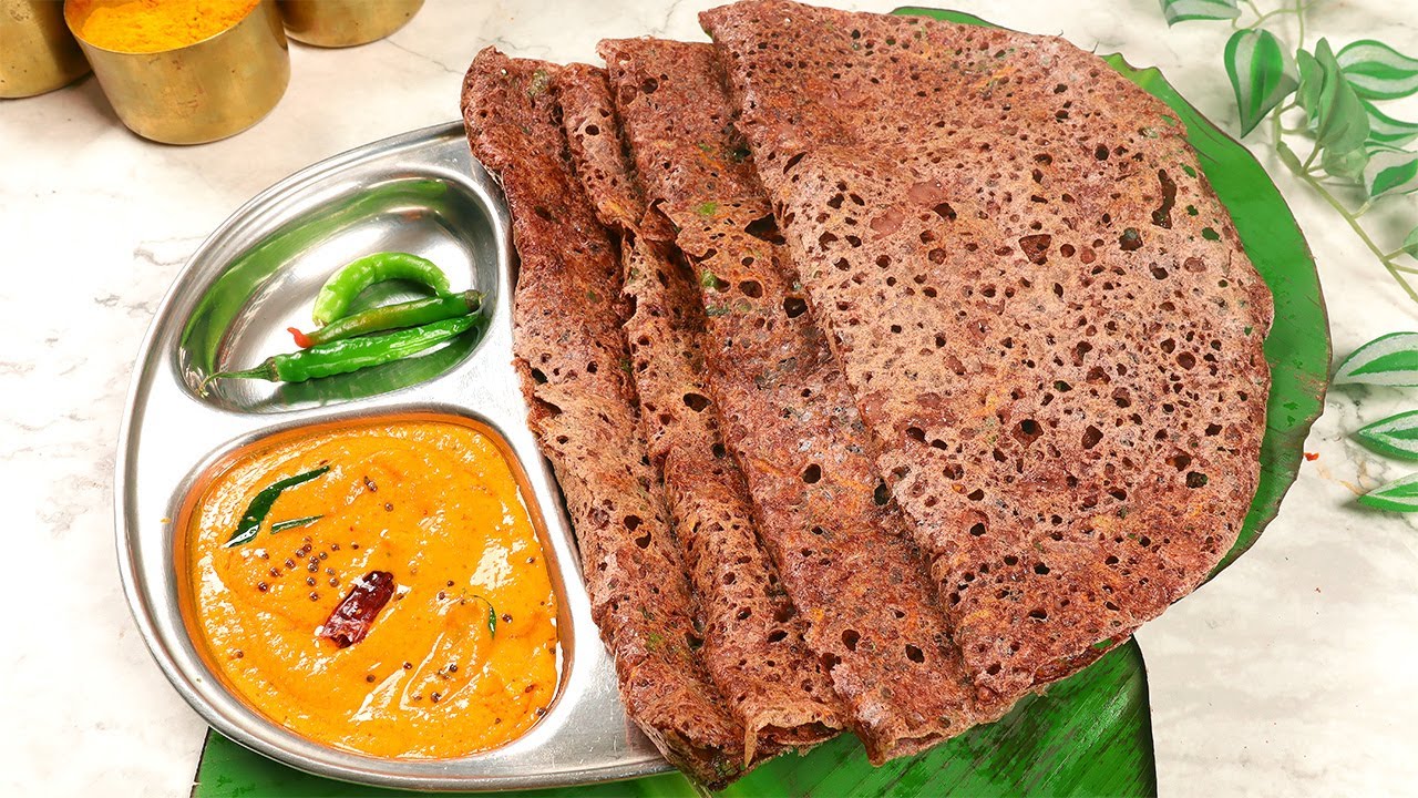 "A nutritious blend of ragi flour, rice flour, and spices—crispy, earthy, and perfect with chutney and sambar