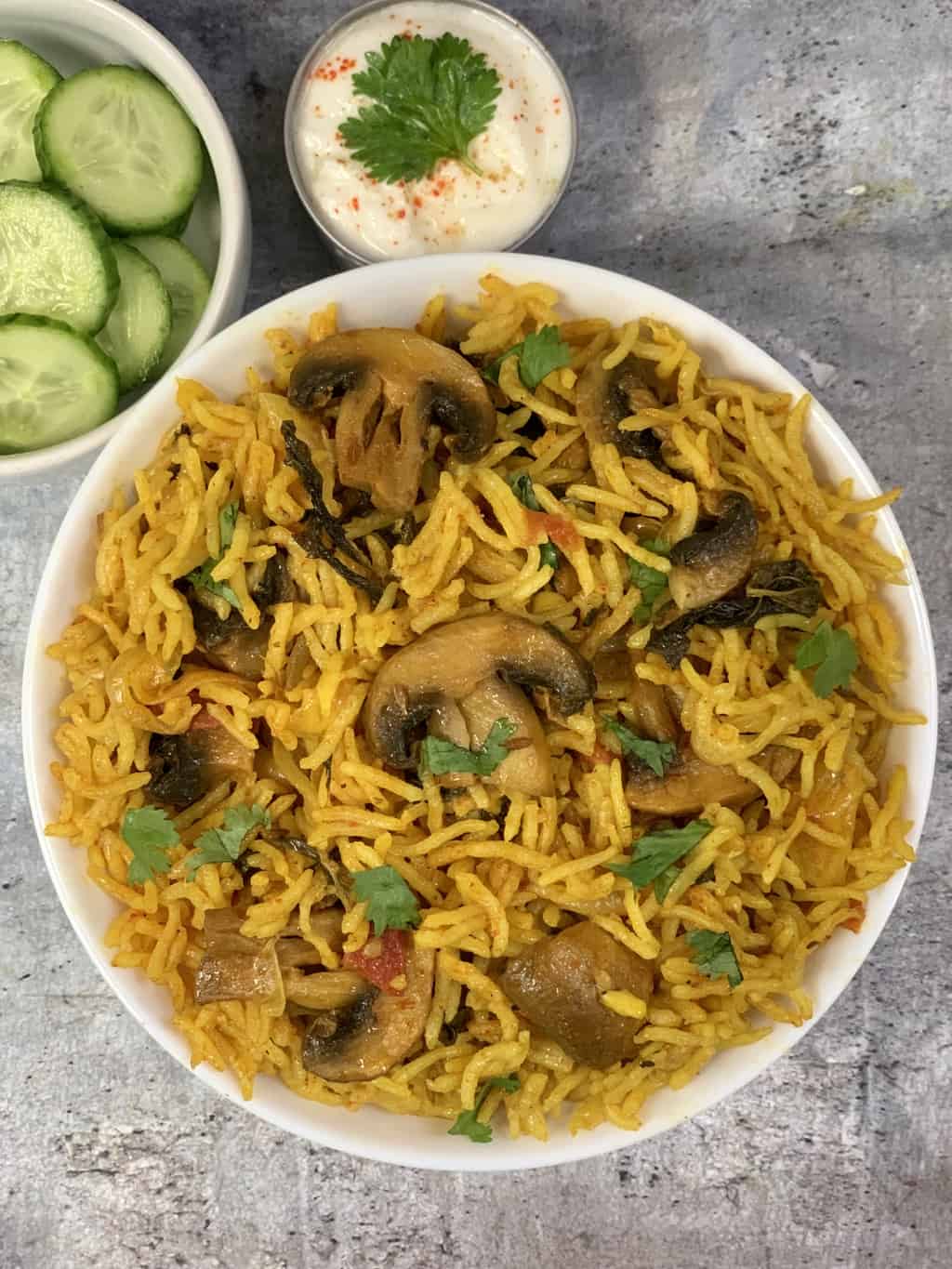"Here's a short and flavorful version reimagined for mushroom biryani